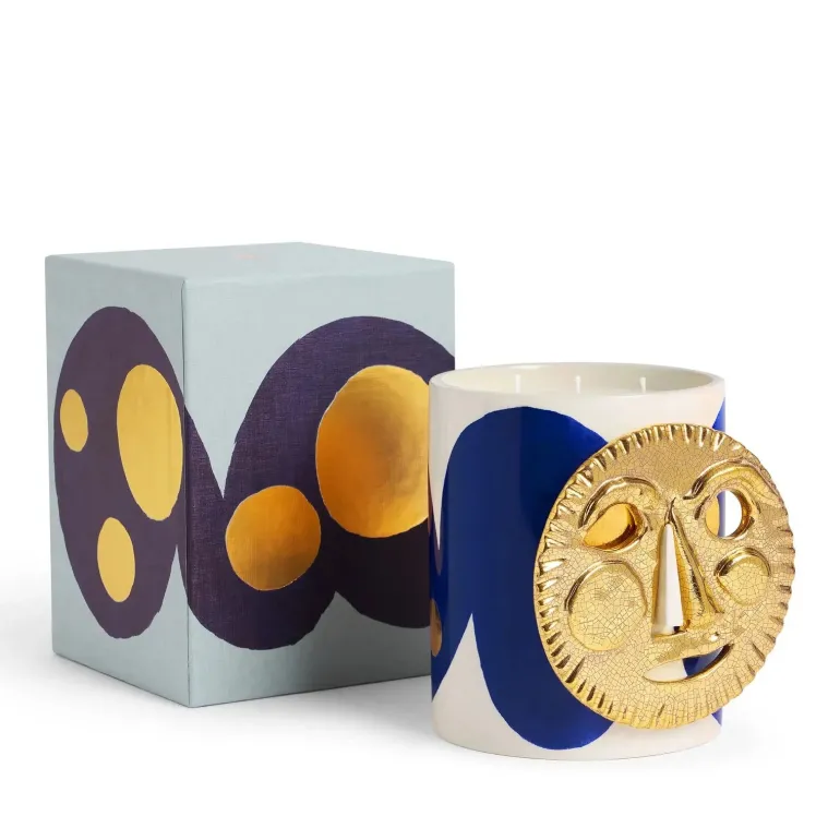 L’arte unica di Ruan Hoffmann prende vita in questo pezzo, con accenti d’oro applicati a mano dai nostri maestri artigiani che brillano contro la forma ludica della candela. Il coperchio, modellato come una maschera espressiva, aggiunge un ulteriore strato di artisticità: quando posizionato sull’esterno, trasforma la protuberanza nel ‘naso’, arricchendo ulteriormente il carattere e la funzionalità del design.